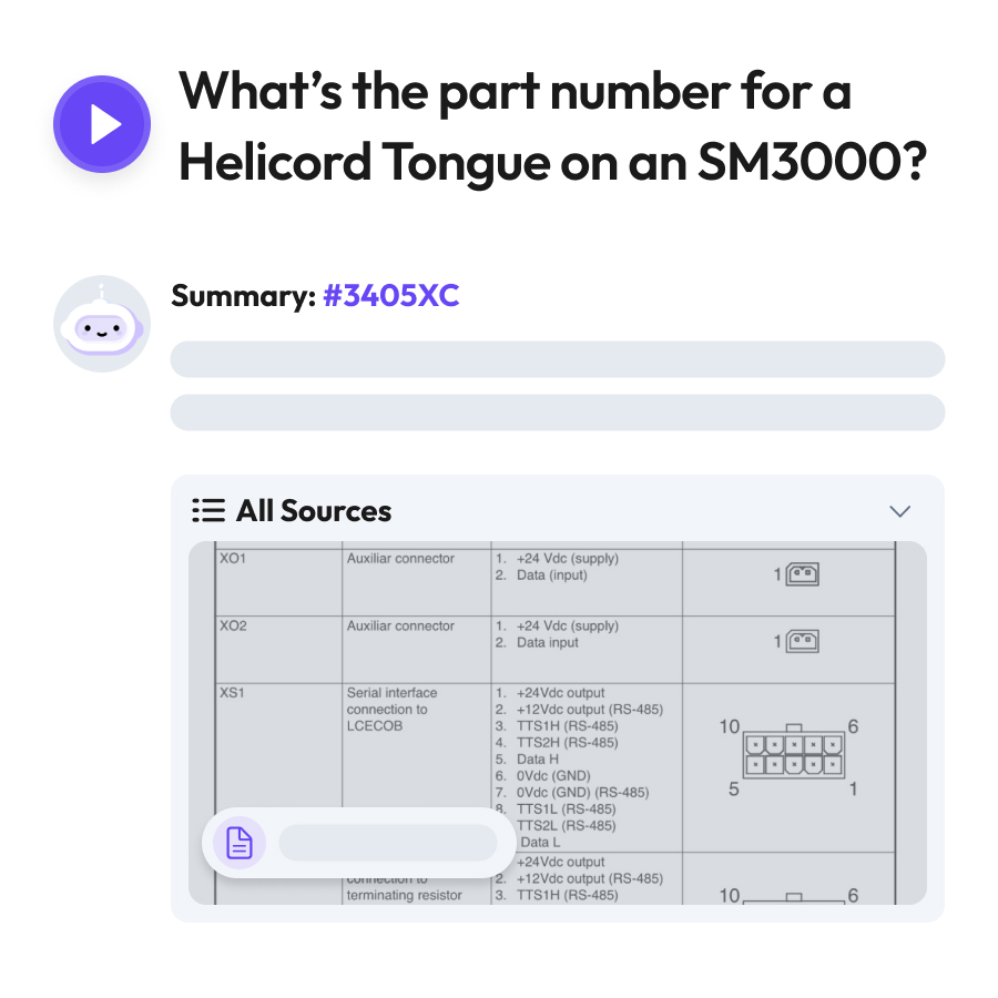 - Visual content is searchable, so techs can find part numbers, serials, and specs instantly